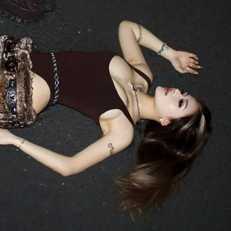 Brown Suspender Tights One-pieces Sexy Bodysuit Lingerie Slim Fit Body Feminino Sleeveless Lenceria Femenina Bustier Rave Outfit