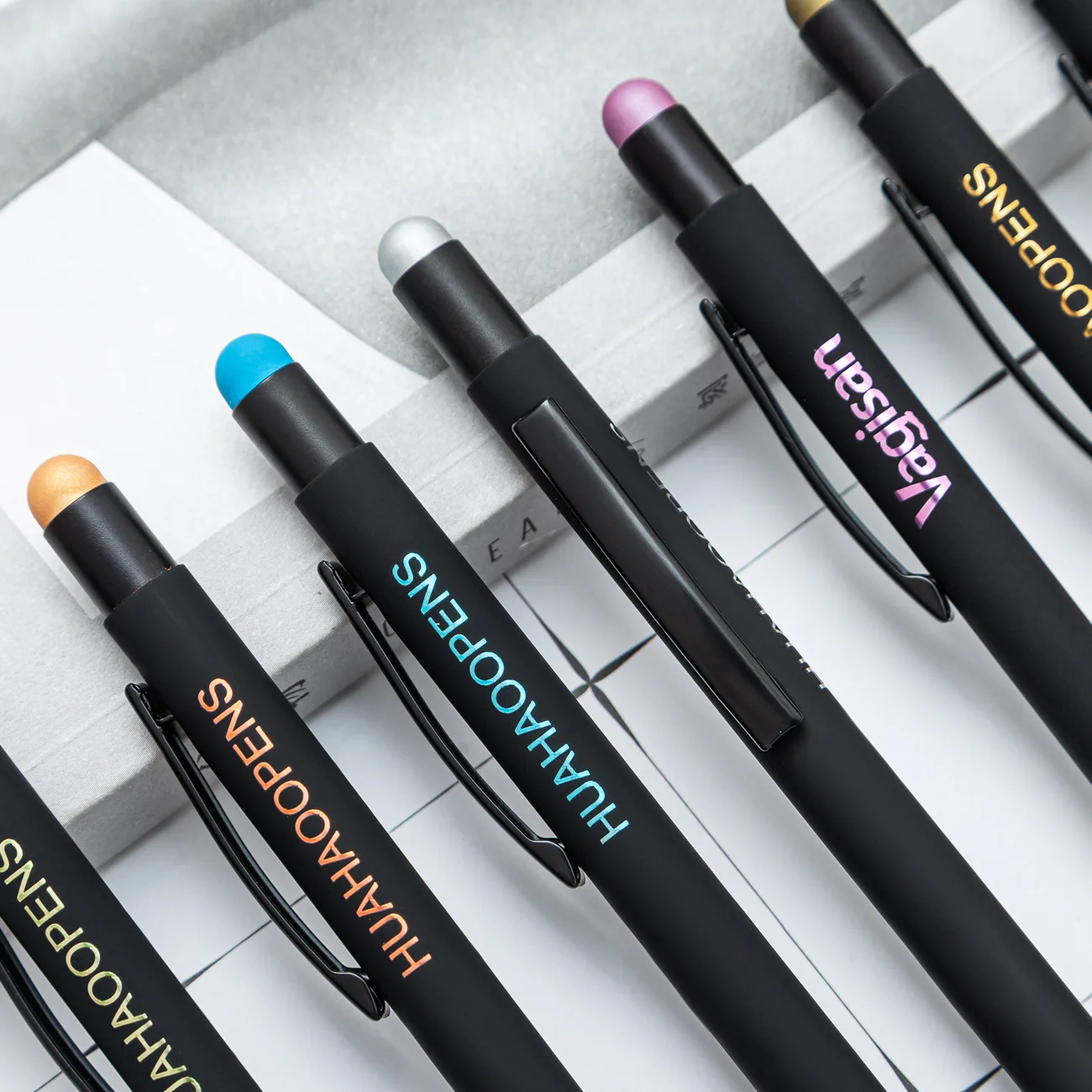 New black 2 in 1 metal stylus ballpoint pen, promotional gift, aluminum body soft rubber tip, logo can be printed.