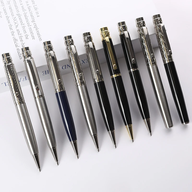High-end signature ballpoint pen, rotating metal body, heavy weight, diamond inlaid, customized logo, wedding and office gift