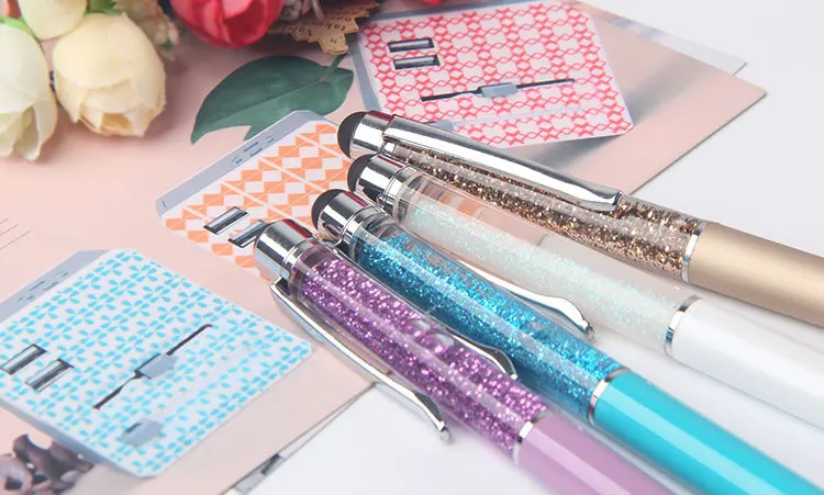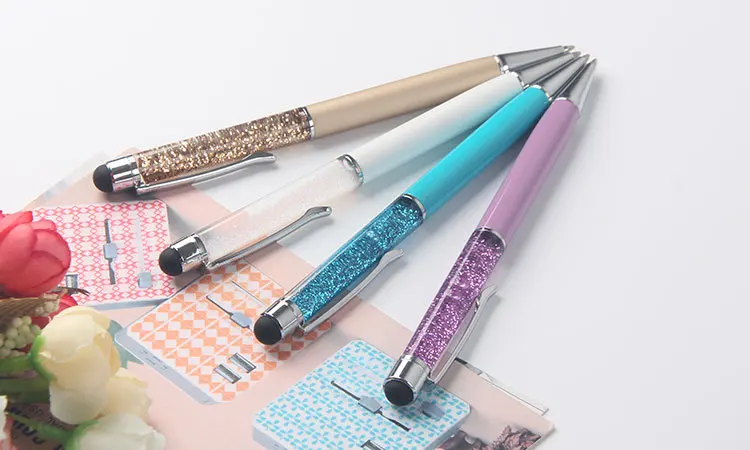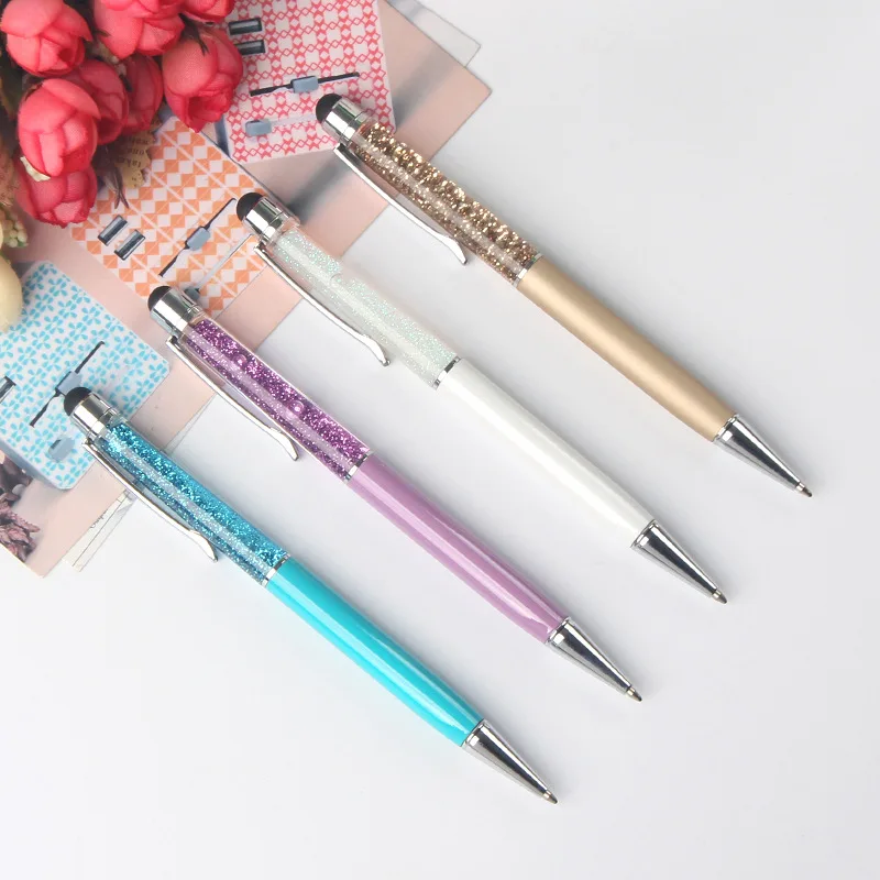 Business Metal Crystal Round Ballpoint Pen Touch Screen Embossed Ink with Logo Capacitive Ink Absorption