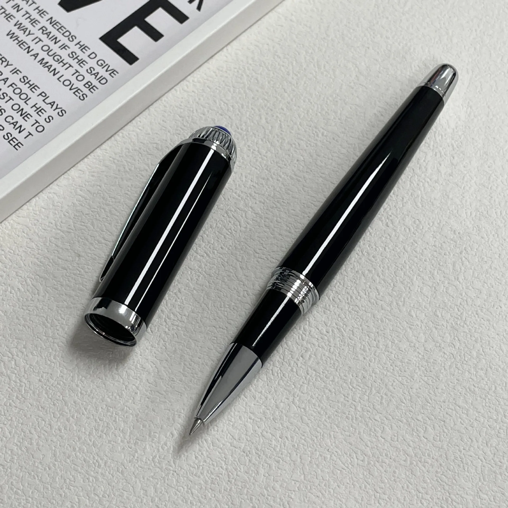 High-quality metal rollerball gel pen, sturdy, for executives, diamond-studded tip design, black engraving, corporate gift for foreign guests.