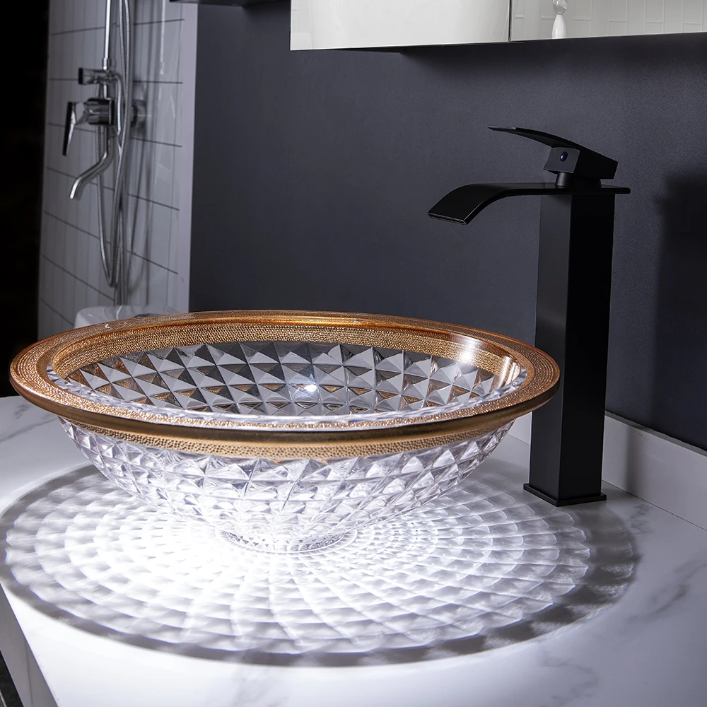 Modern minimalist crystal wash basin for hotel bathroom, wash basin, family bathroom cabinet, glass wash basin