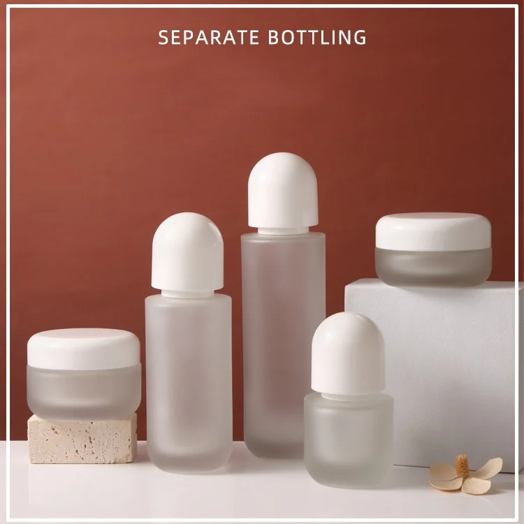 Slim cosmetic glass bottle, thick bottom, transparent, with pump, used for Serum Lotion Cream