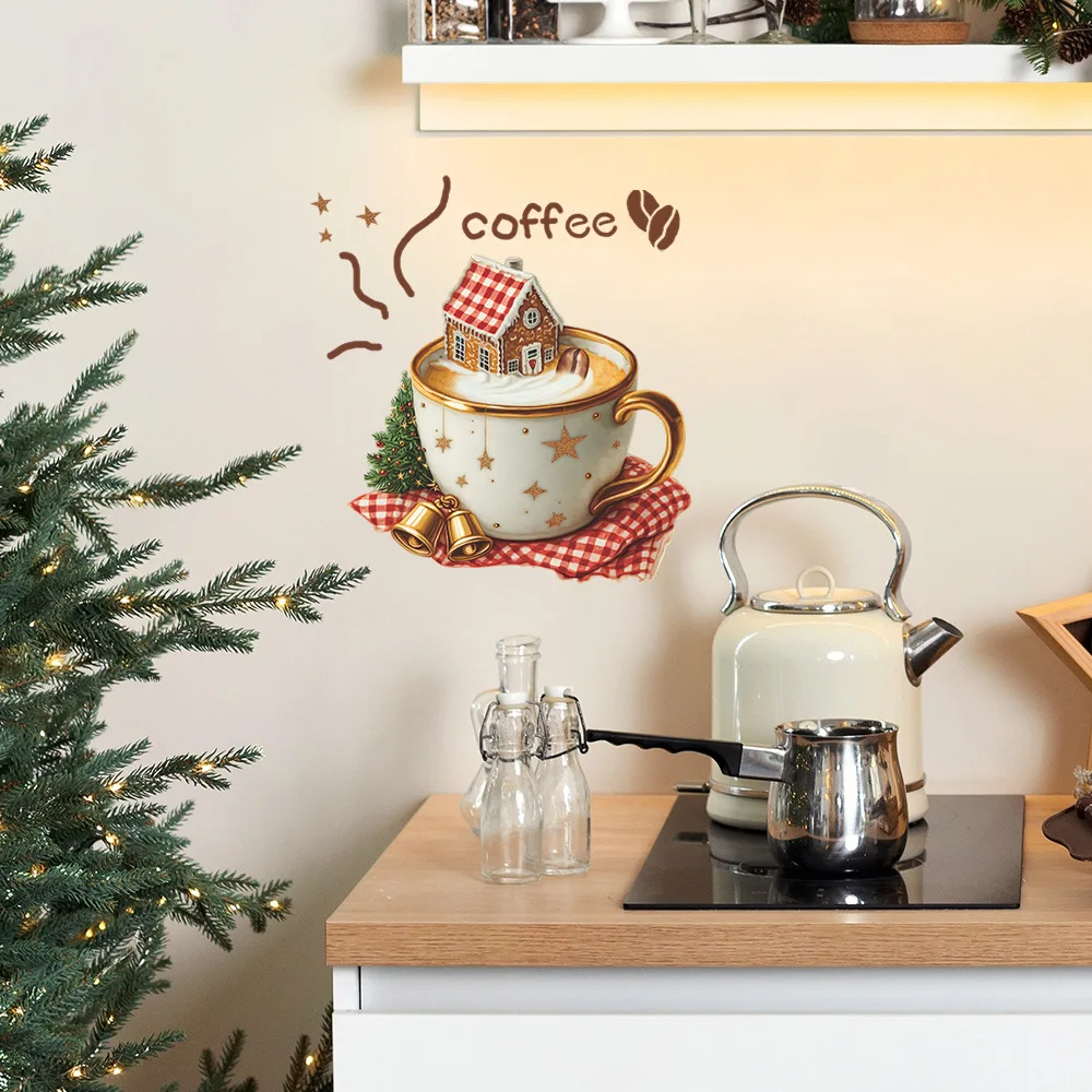 Christmas Coffee Cup Wall Stickers Living Room Restaurant Decoration Mural Cafe for Kitchen Home Decor Self-adhesive Wallpaper