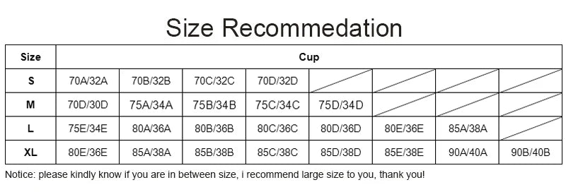 Suitable size : A Cup, B cup, C cup, D cup, E cup, F cup