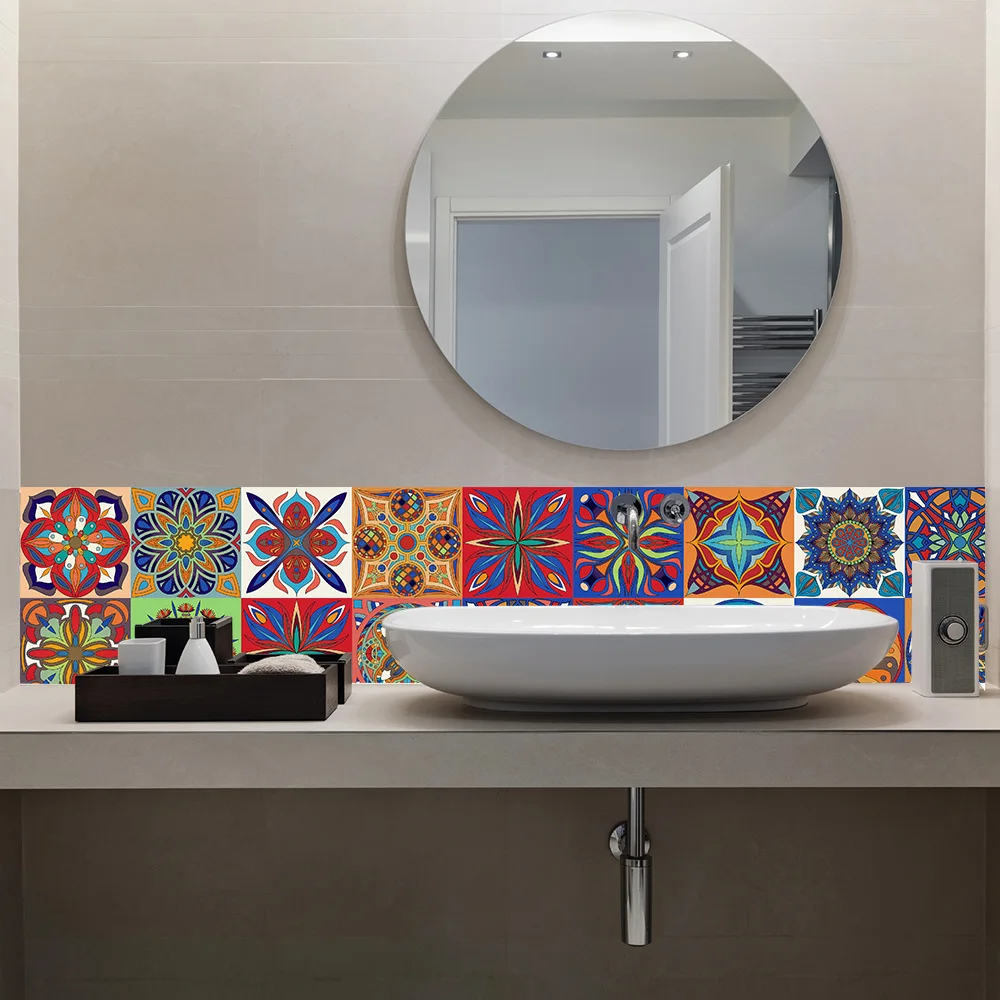 Colorful Mandala Style Strip Tiles Wall Sticker Kitchen Wardrobe Bathroom Waterproof Wallpaper Peel & Stick Art Wall Decals