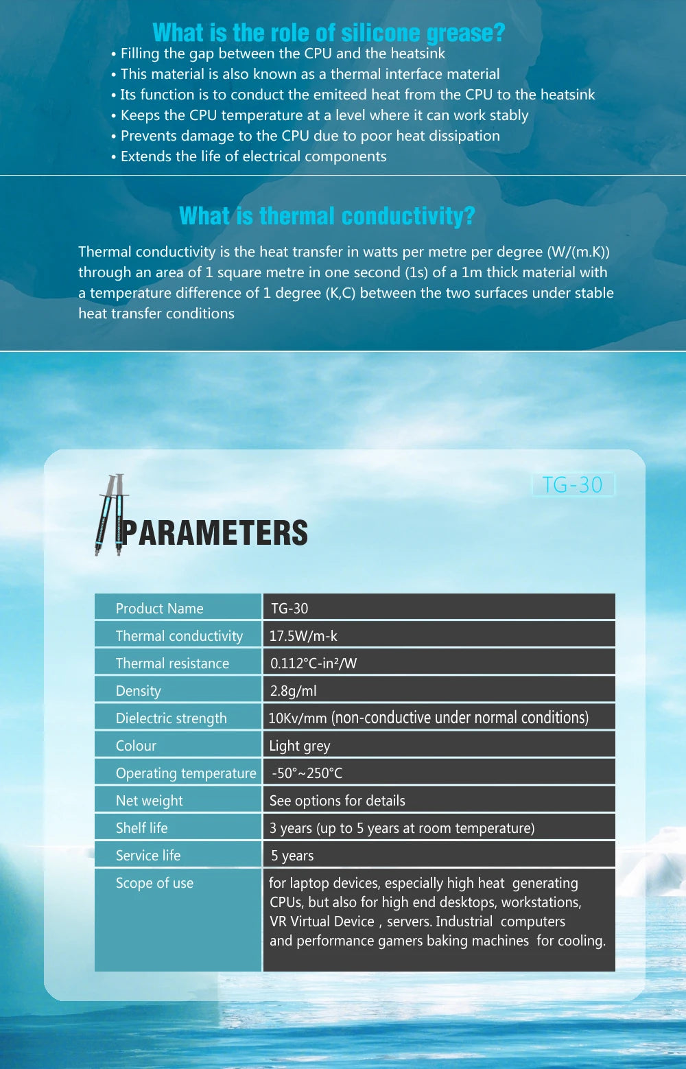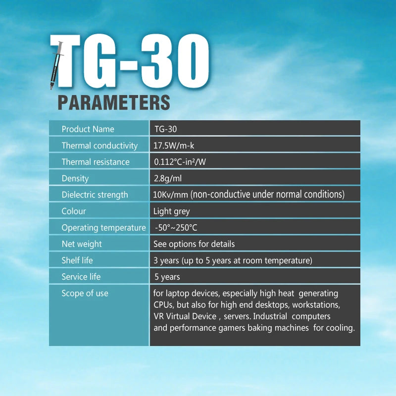 Coxbyte TG-30 Thermal Paste 17.5W-mk for AMD Intel Processor CPU Cooler Computer Cooling Fan VGA GPU Compound Heatsink Plaster