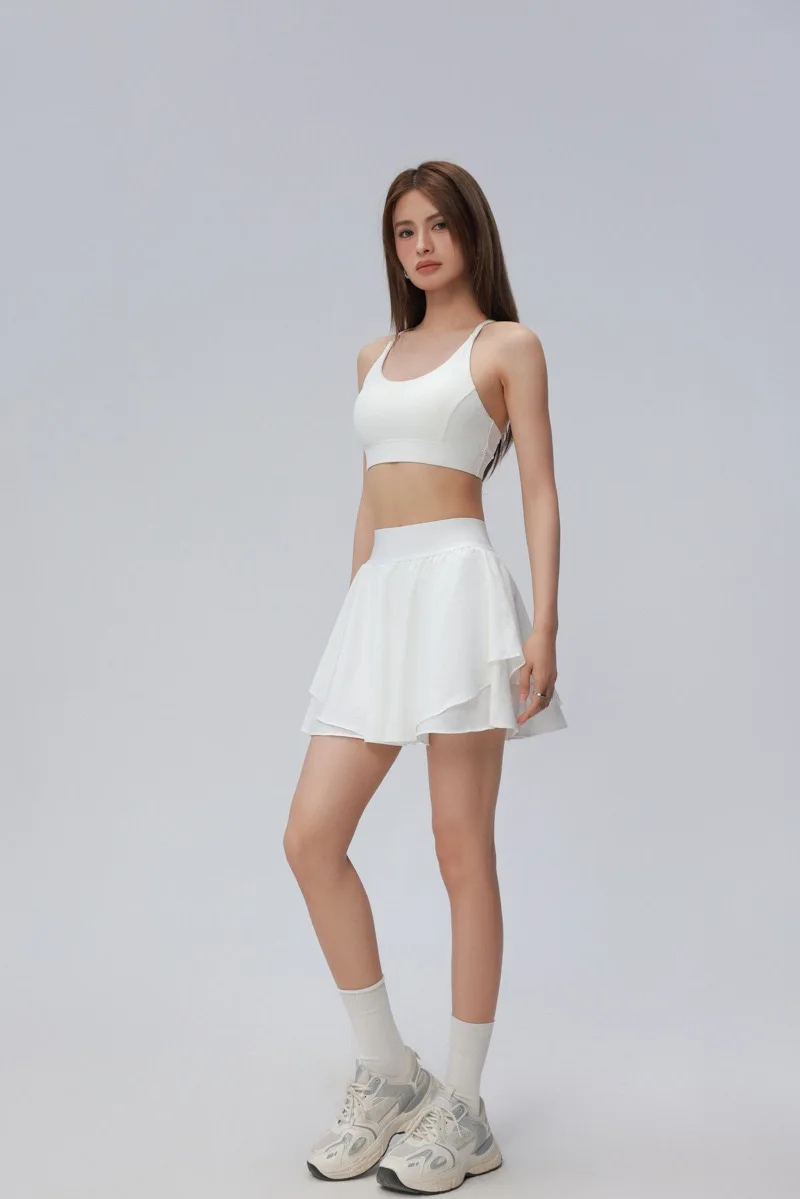 Women's Cross-Waist Yoga Skirt for Gym with Inner Pants & Pockets