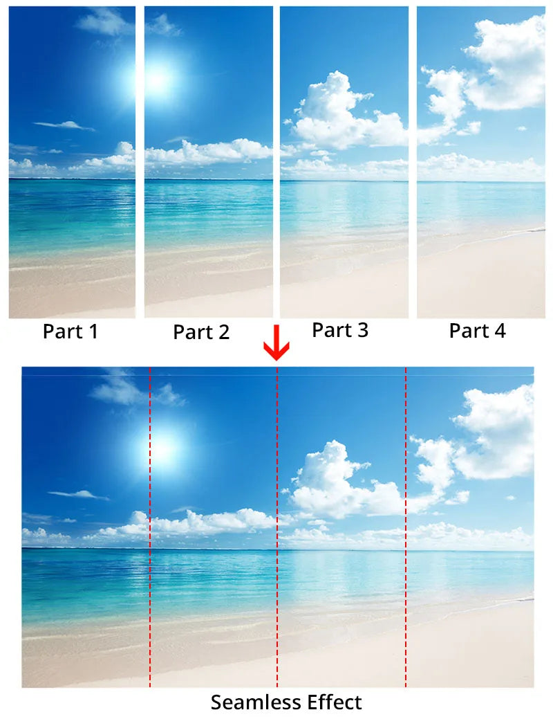 Please choose you favorite material first, and then choose " Customized size " and " Quantity 8 " here. Meanwhile mark your detail wall width & height below the order or leave us a message .