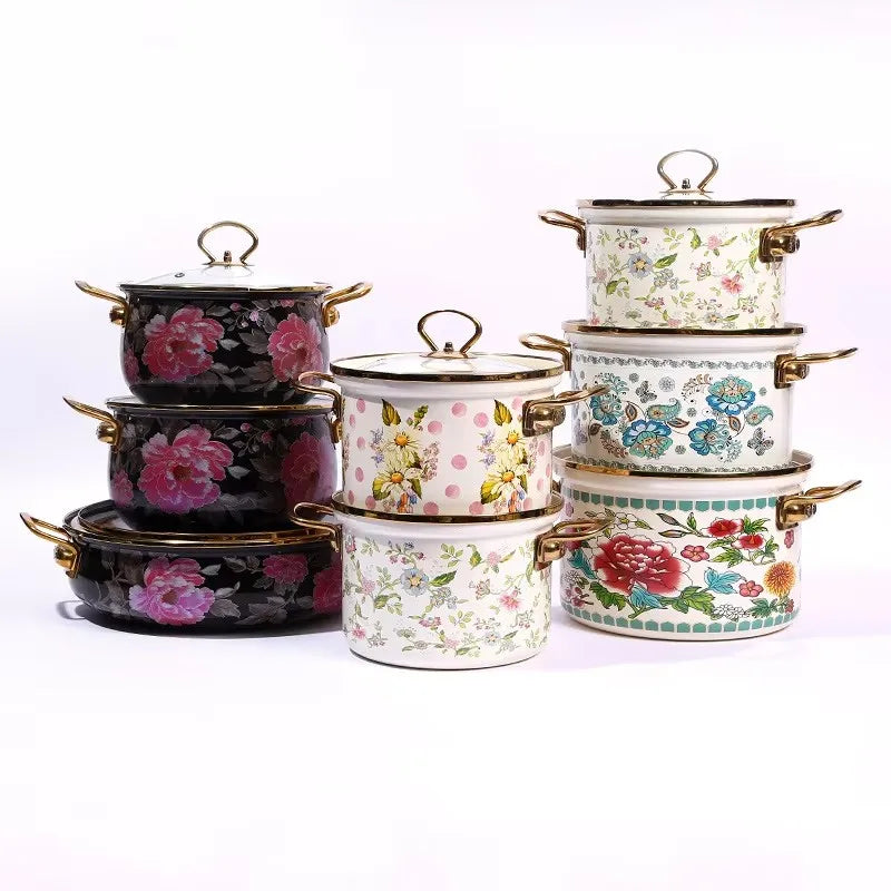 High-Grade Carbon Steel Pot with Gold Enamel Double Ears