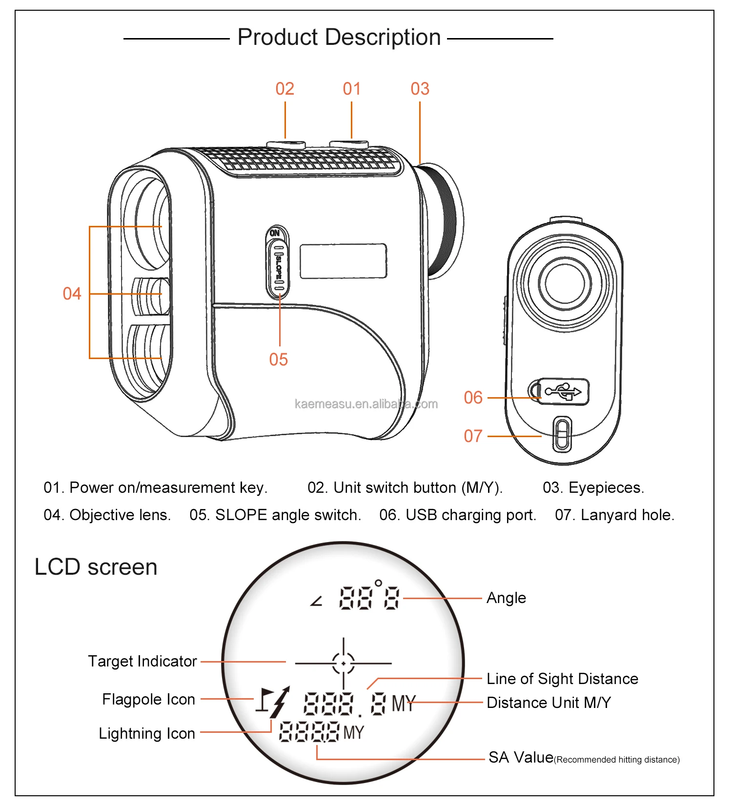 1 x Laser Rangefinder 1 x USB charging cable