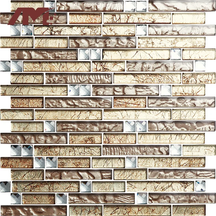 Modern Luxury Kitchen Range Brown Mirror Metal Wall Decor Tiling Crystal Glass Mosaic Tiles