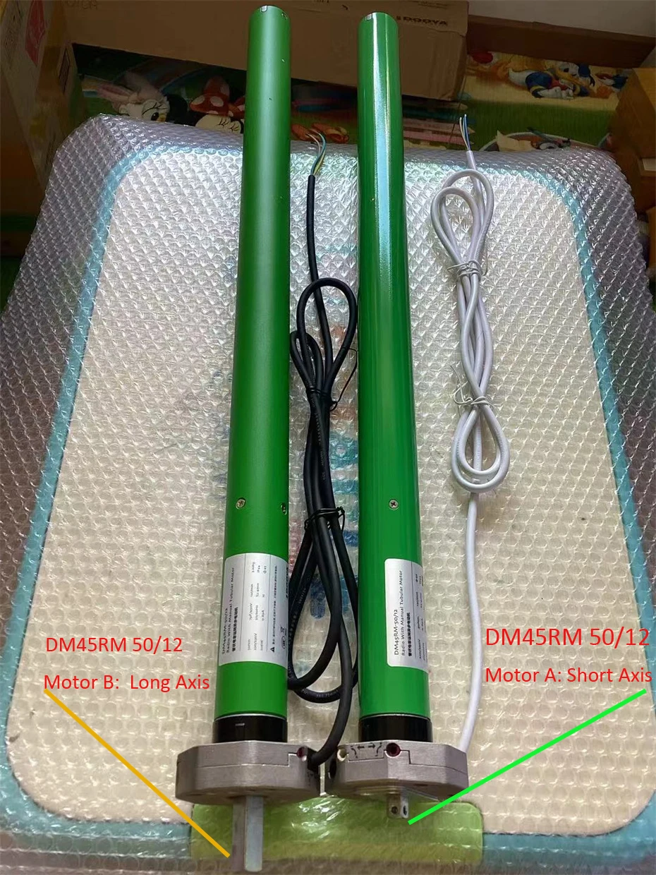 3. DM45RM 50/12 is SHORT AXIS VERSION-1CM (It is motor A in below pictures). The width of the top axis of this short axis motor is about 1CM(10MM) .