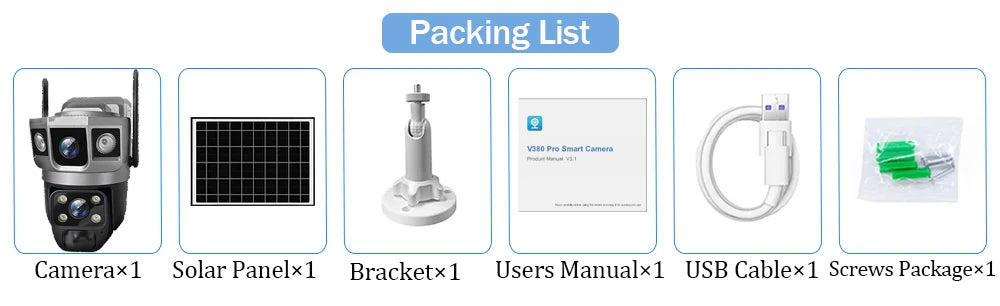*Solar panel +type-c charging cable + plastic holder + manual + screw cover *2