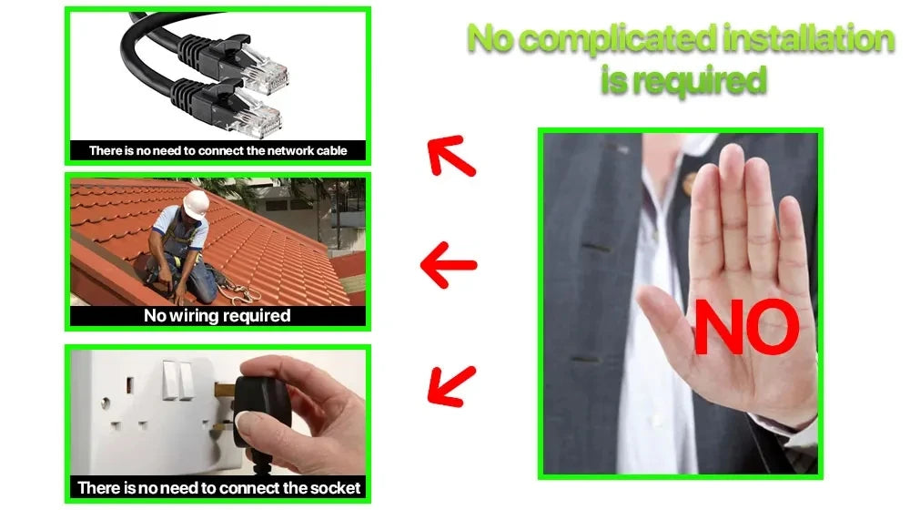 *Choose a solar surveillance camera. NO wiring, NO power required. Just connect 2.4g wifi (WiFi version)to use it,with built-in batteries and continuous solar charging for 365 days of uninterrupted use. Easy to install and use.