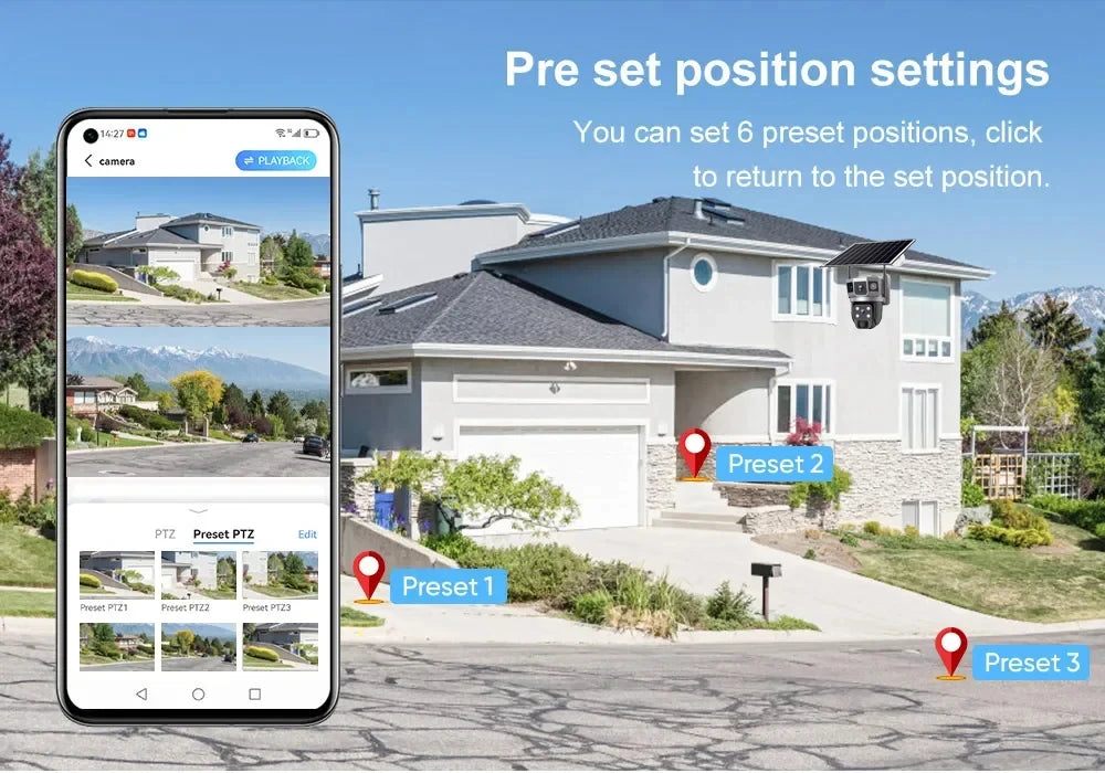 Solar PTZ Camera 12MP WiFi 10X Zoom - 3 Screens