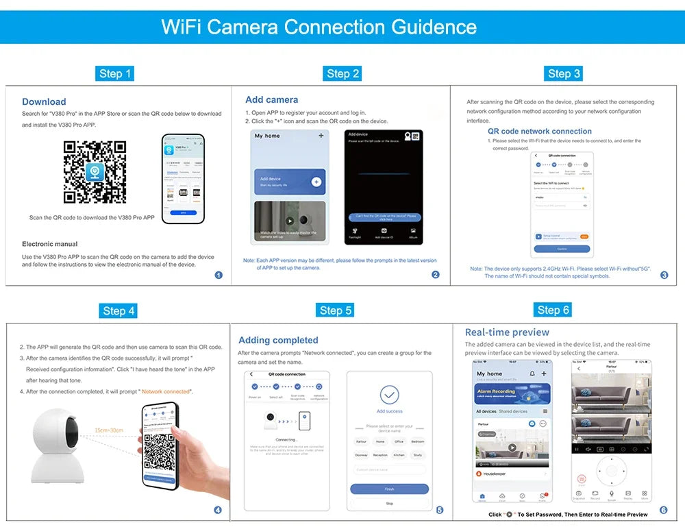 *You can easily connect the camera to a 2.4G Wi-Fi network (5GHZ WiFi is not supported)