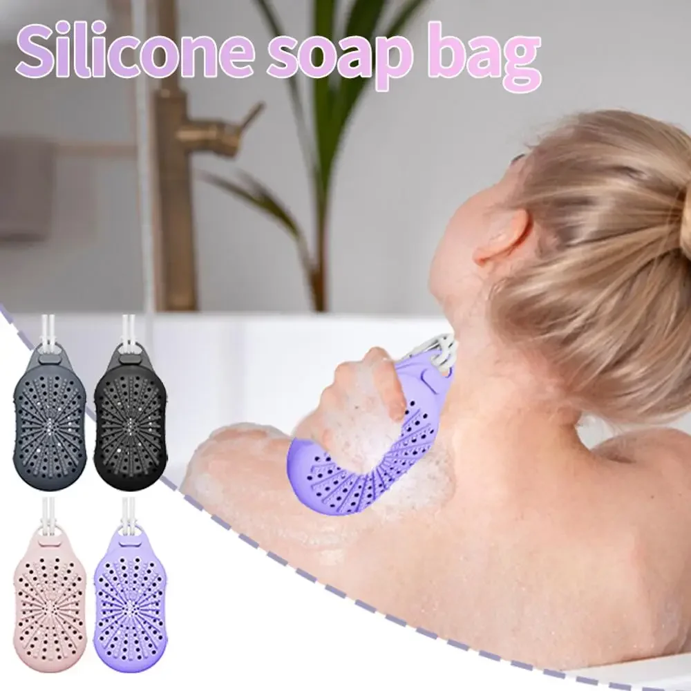 Dual-Sided Silicone Bar Soap Scrubber Exfoliating Soap Holder Pouch With Gentle Deep-Clean Quick-Dry Soap Saver For Shower