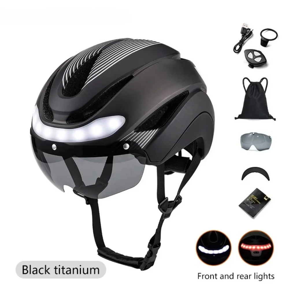 Bicycle Helmet with LED Lights, Magnetic Glasses, Turn Signals