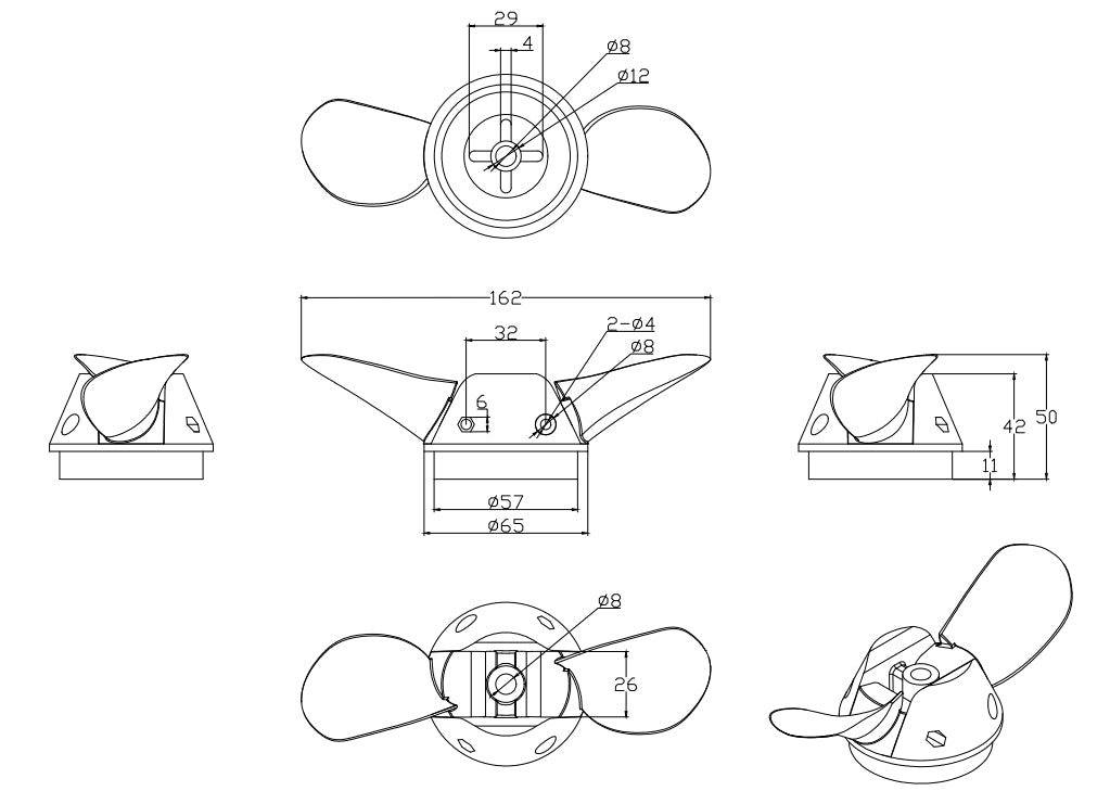 Cánh Quạt Gập 2 Lưỡi Flipsky 162mm Cho Thuyền Efoil
