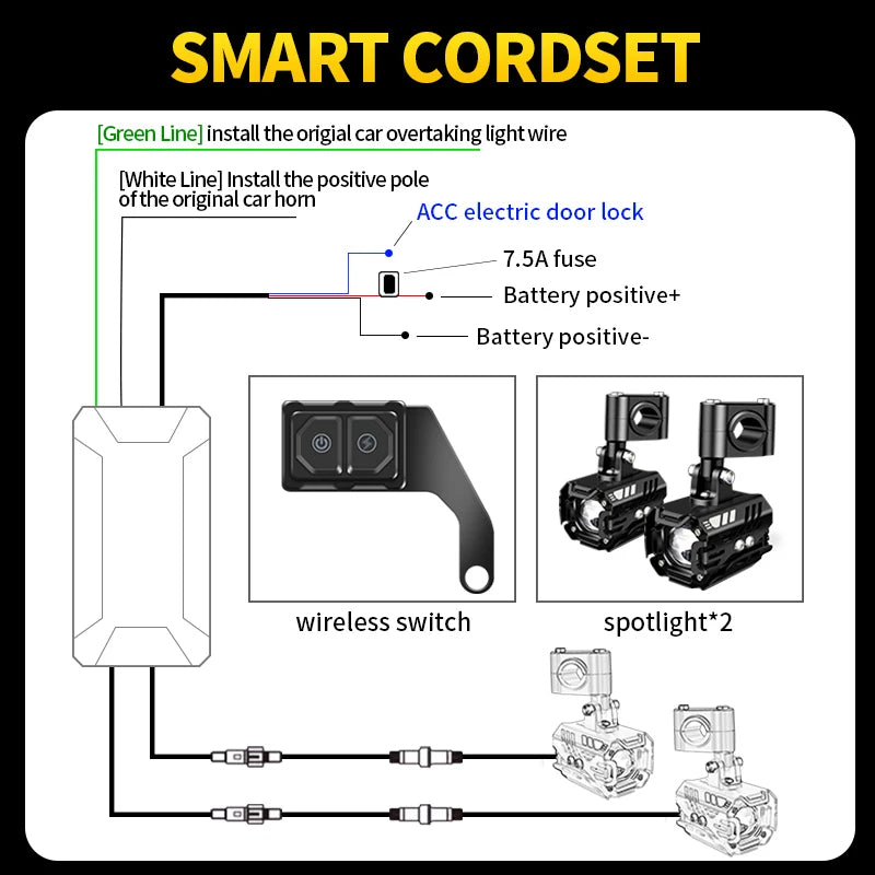 Package content : 2PCS LED headlight bulbs+1Set Wire groups and Switch