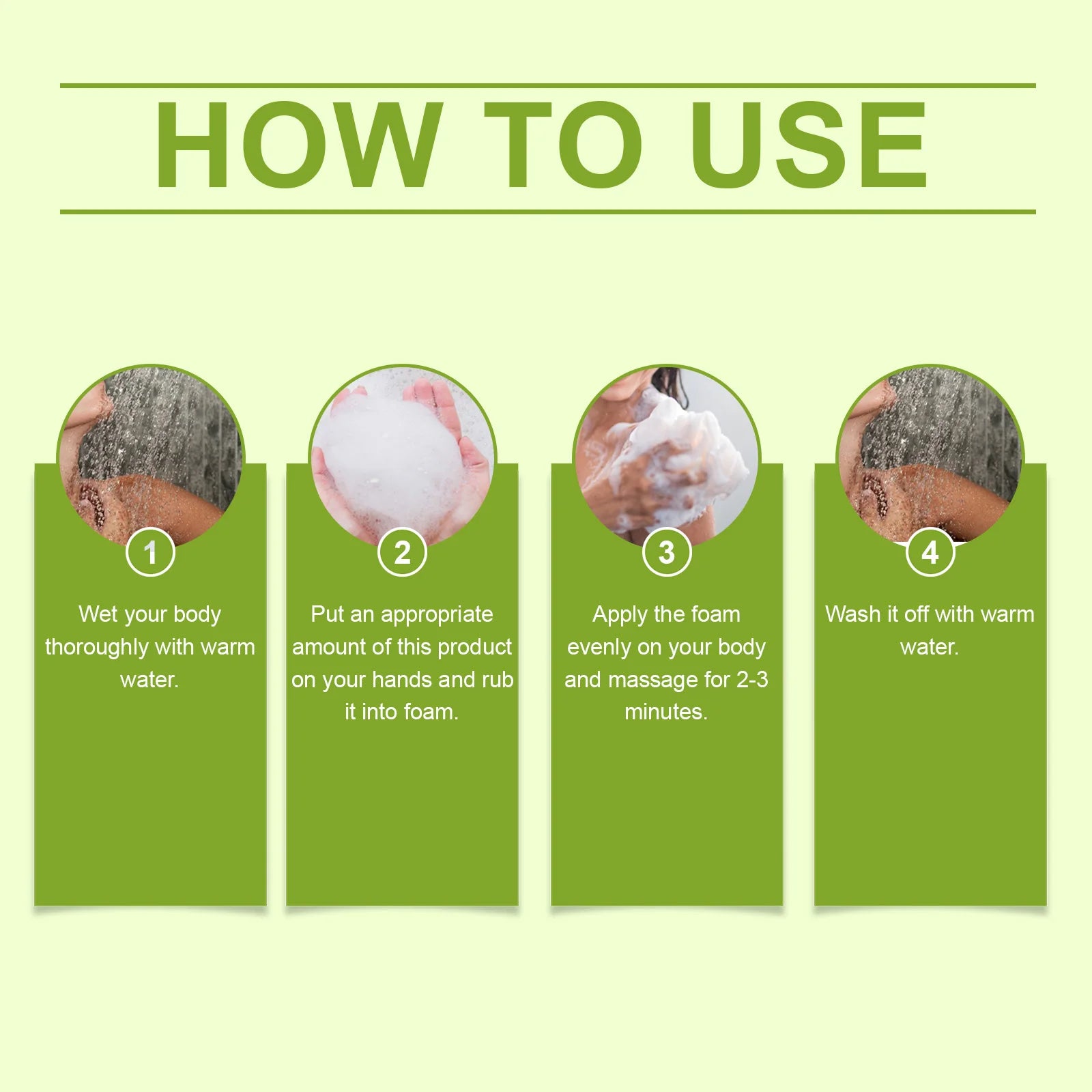 3. Apply the foam evenly on your body and massage for 2-3 minutes.