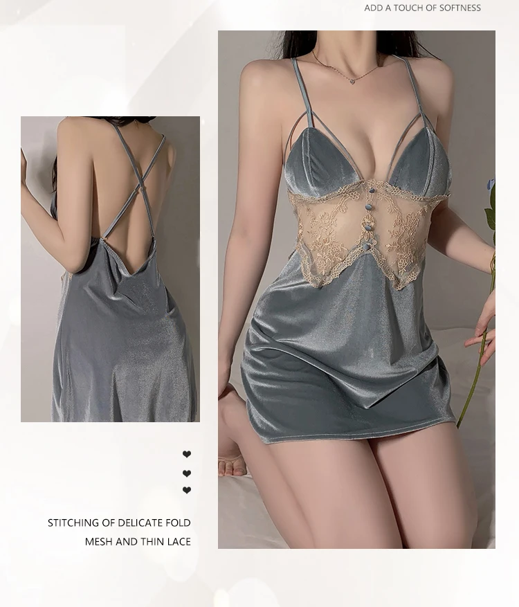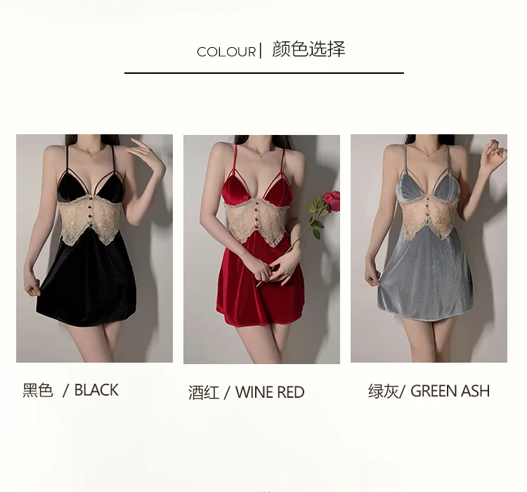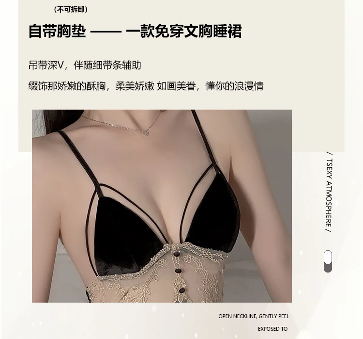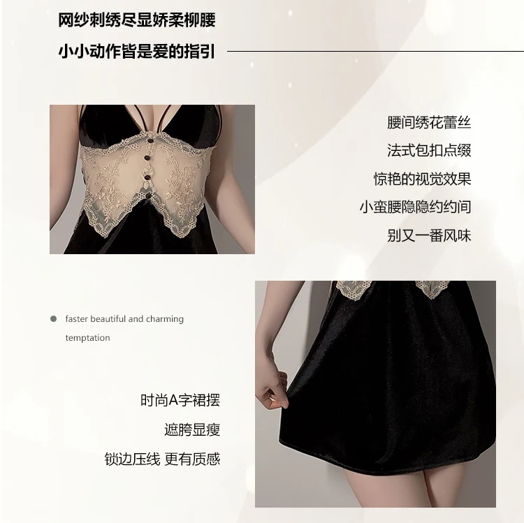 Sexy French Velvet Nightgown with Padded Straps, Half Sleeves, Spring Autumn