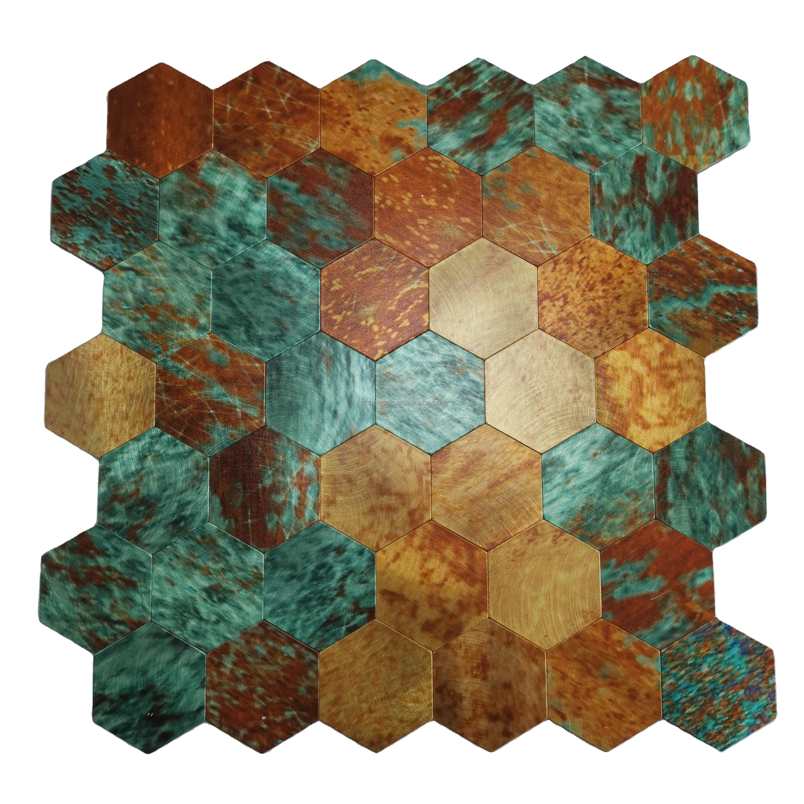 Hexagonal Glass Aluminum Peel and Stick Wall Tiles in Custom Style