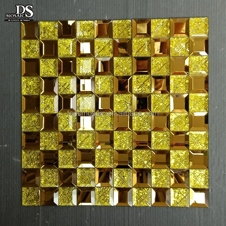4mm Modern Yellow Self Adhesive Square Wall Tiles, Mirror Glass Mosaic for Interior Wall