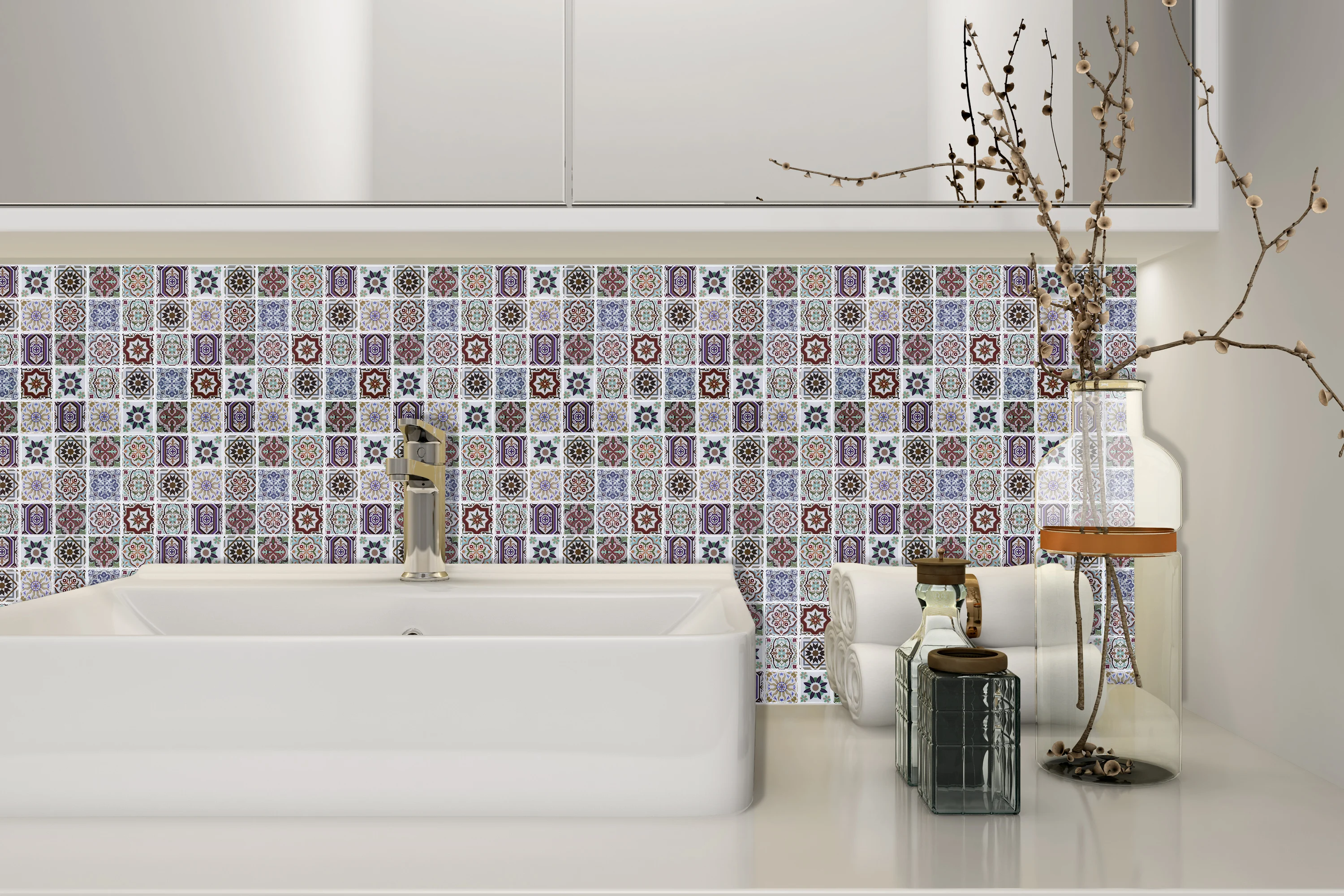 Moroccan style decorative vinyl wall tiles easy to DIY peel and stick for home decor