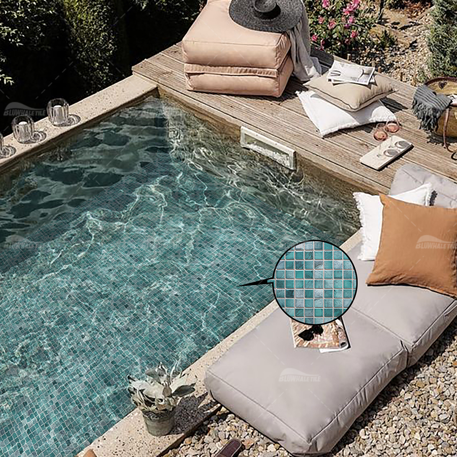 Bluwhale modern blue inkjet printed ceramic bathroom swimming pool mosaic tiles 48mmx48mm wholesale price made in China