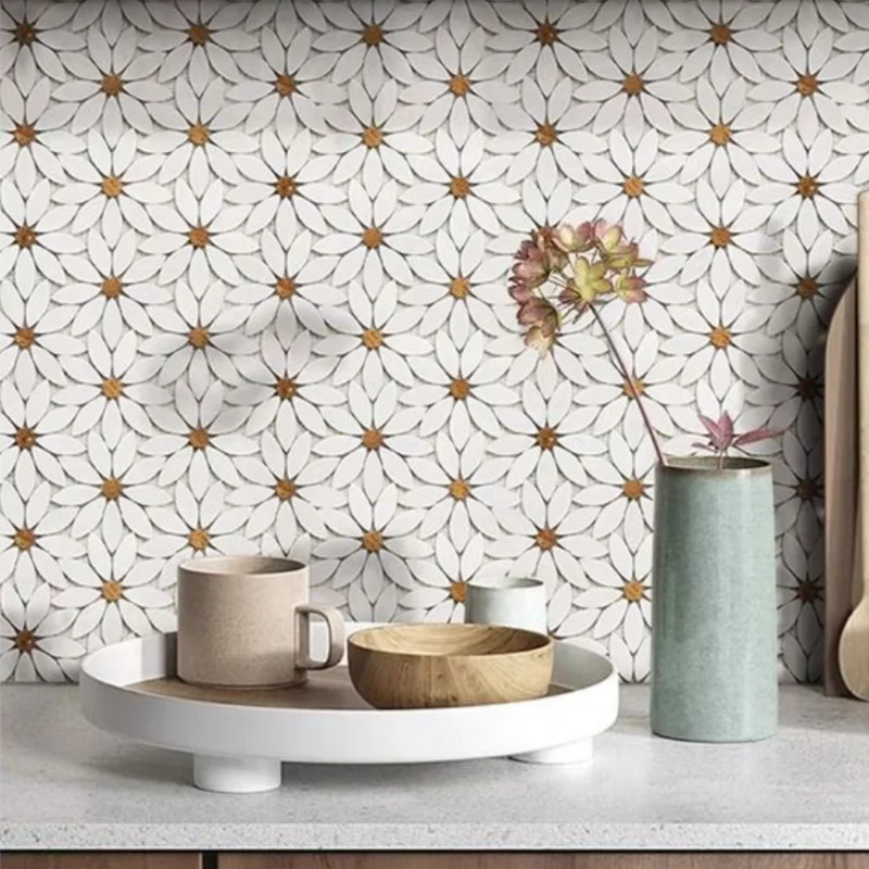 Leaf shape marble mosaic factory mold, can be customized in various colors. 8mm thick and has aesthetic appearance.