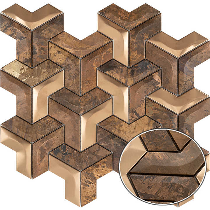 3D Rusty Brass Triangle Metal Mosaic Tiles Artistic Shape 272*298 Uneven Color for TV Background and Hotel Wall Decoration