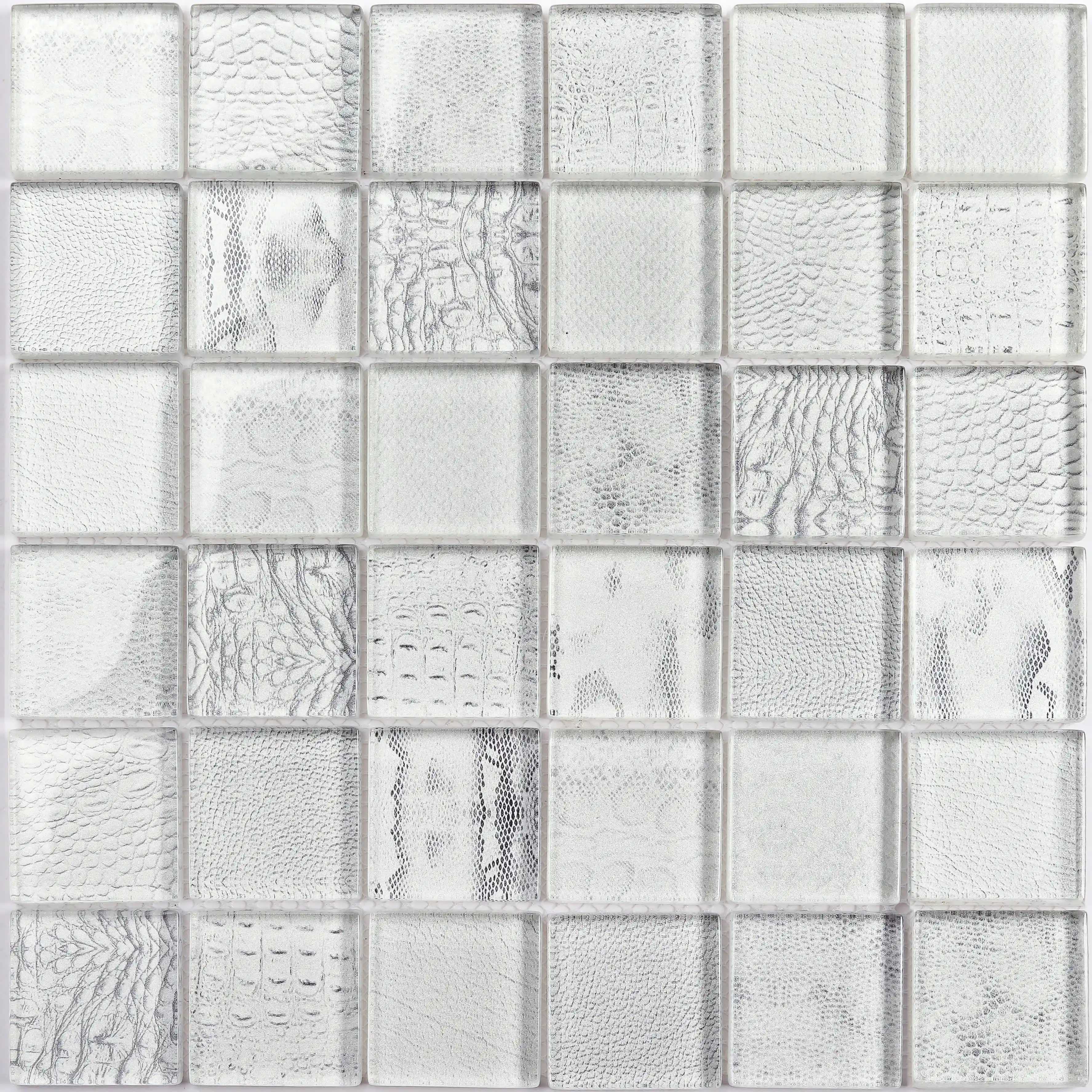 48x48x8mm modern glass mosaic tiles digital printed wild animal pattern wood grain style for kitchen, bathroom, living room, outdoor