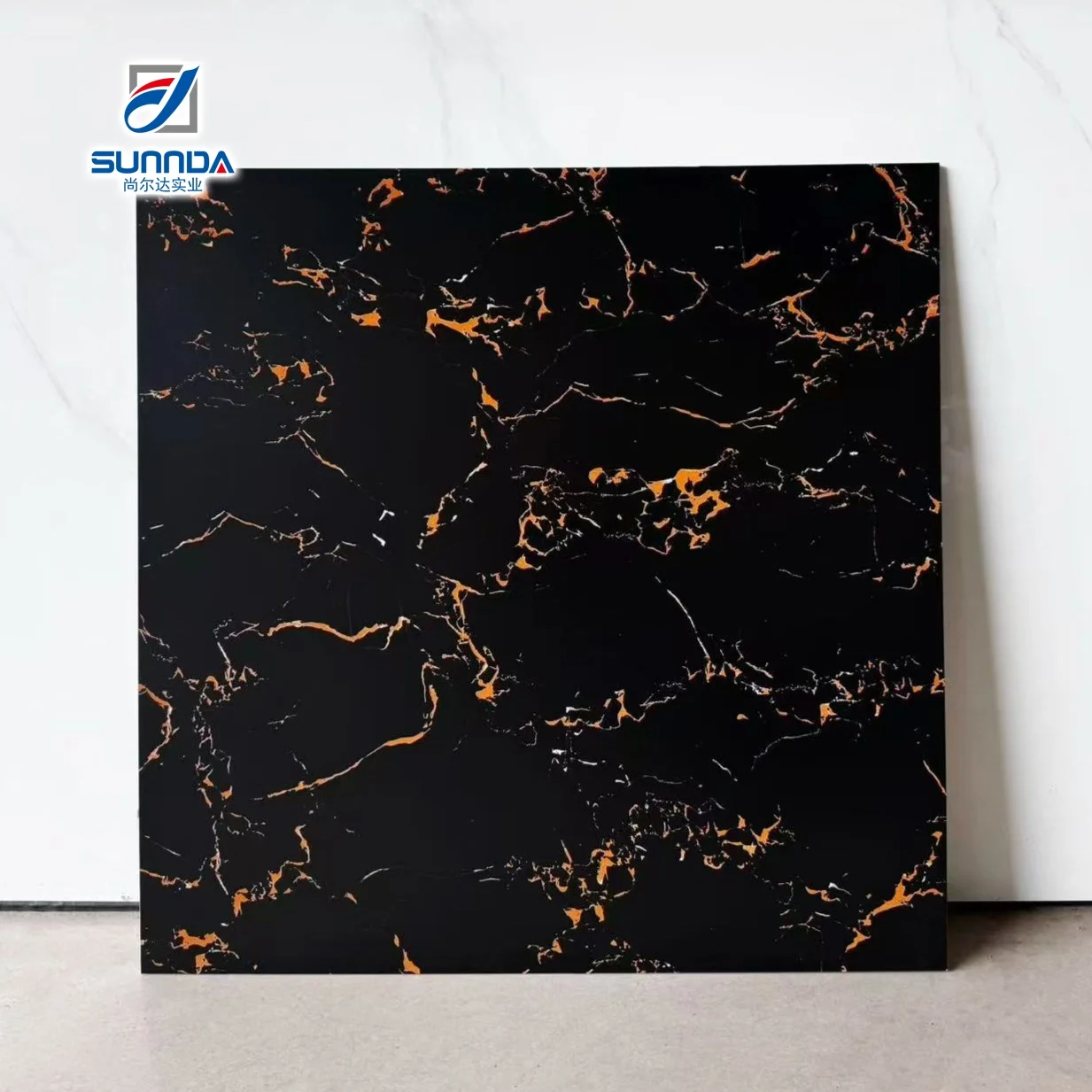 Gạch lát sàn màu đen mờ với đường kẻ vàng, thiết kế đá cẩm thạch Rustic chống trơn