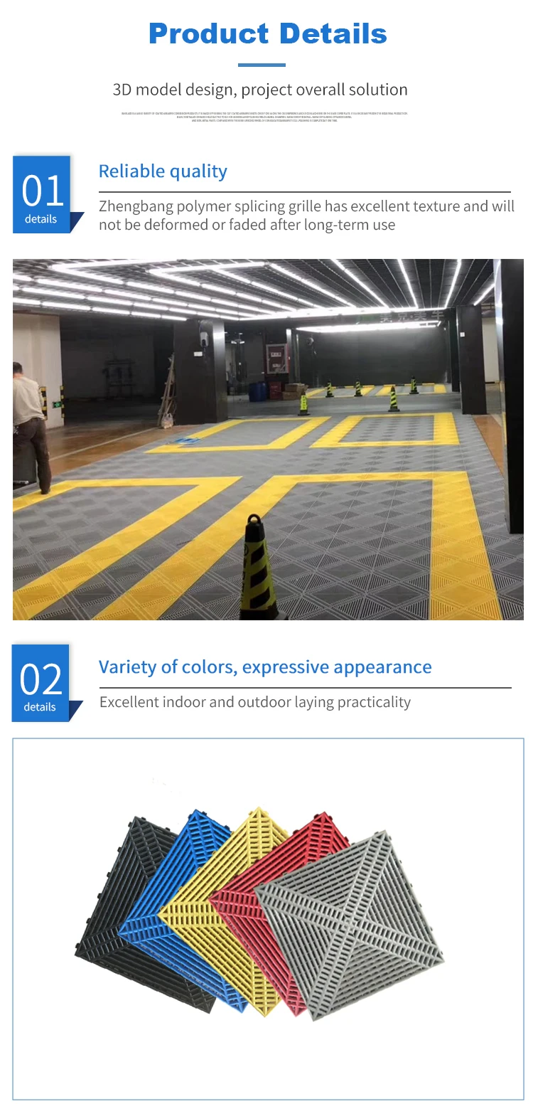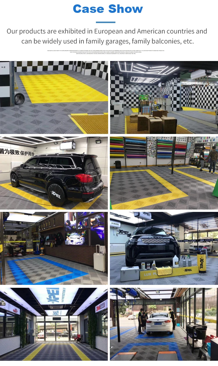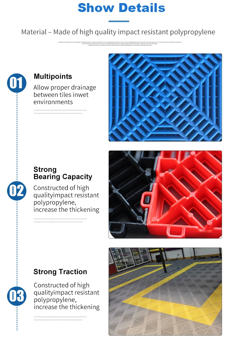 Colorful plastic garage floor tiles, rigid modular, plastic garage flooring for auto repair shop
