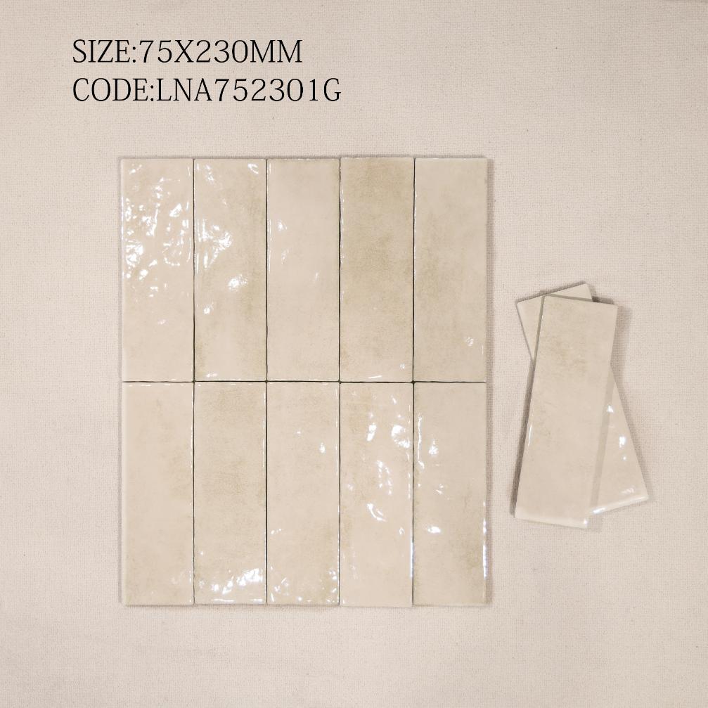 - High-quality materials: Imported 75x230mm tiles are made from high-quality Porcelain material, ensuring high durability, withstands great impact, is scratch-resistant and effectively waterproof.