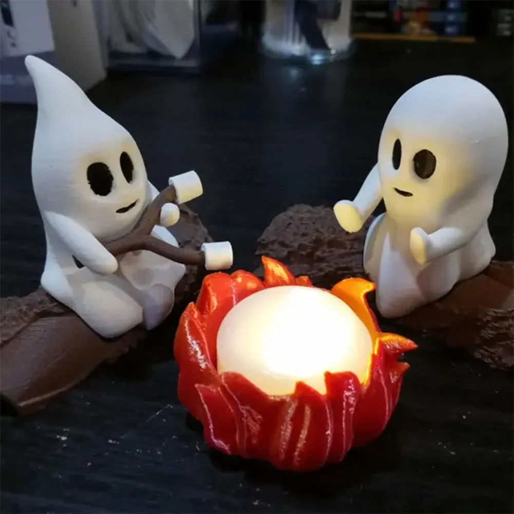 Ghost Campfire Gathering Cute Ghost Figurine Set Ghost Campfire Nightlight Halloween Decorations for Home Mantel Or Desk