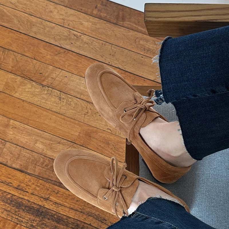 Women's Low Heel Cowhide Vintage Loafers JOZHAMTA 34-43