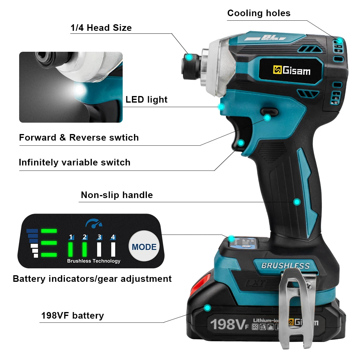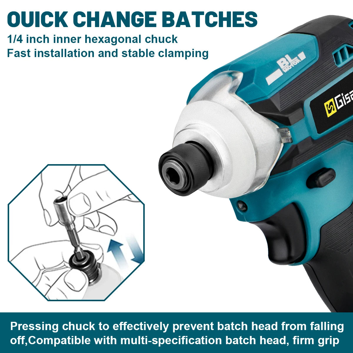 Gisam 588N.m Brushless Electric Screwdriver Cordless Impact Electric Wrench Drill Screw Driver Power Tool for Makita 18V Battery