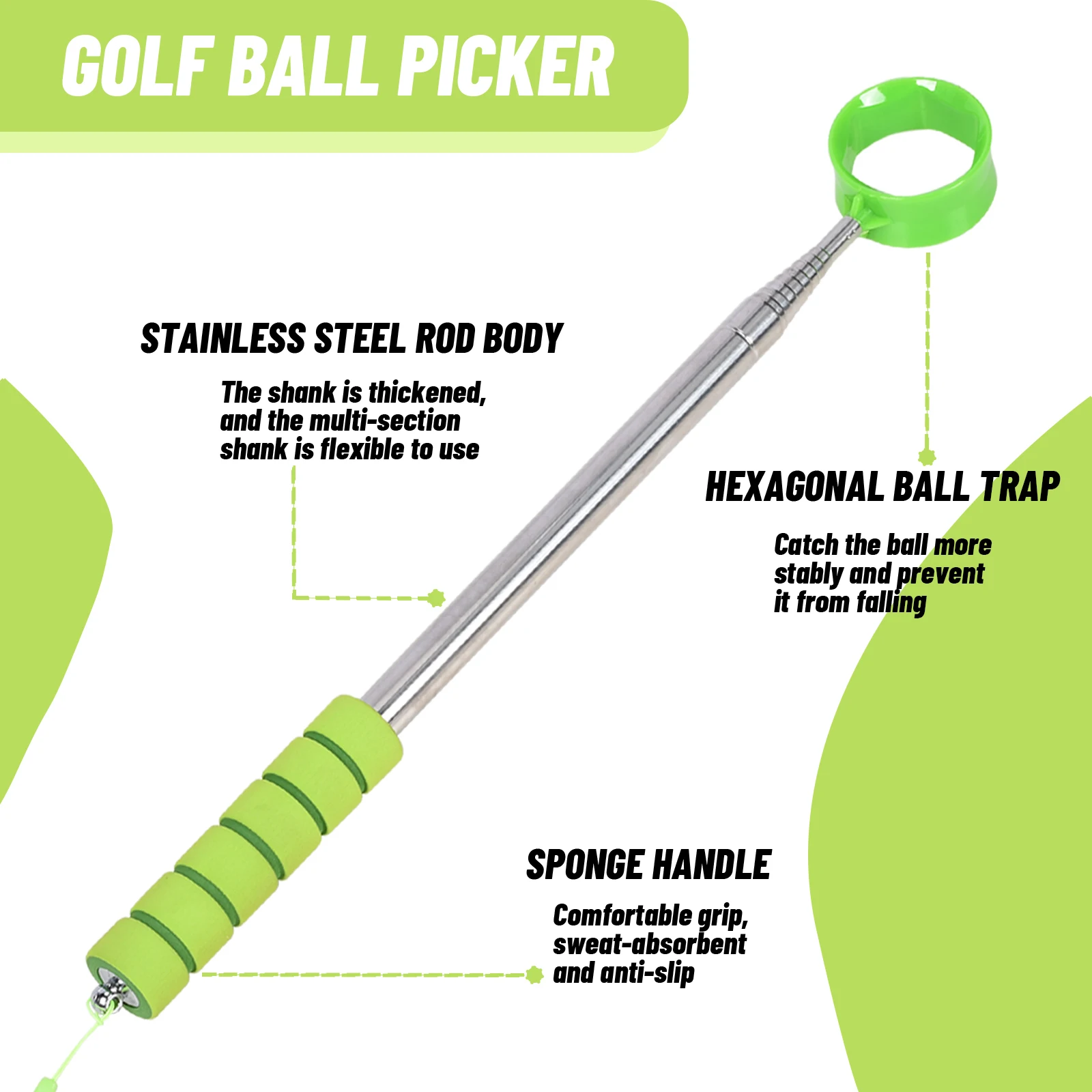 Golf Ball RetrieverTelescopic Stainless Steel Shaft High Durability Double-Sided Ball Picker Upper Grabber Golf Gifts for Golfers