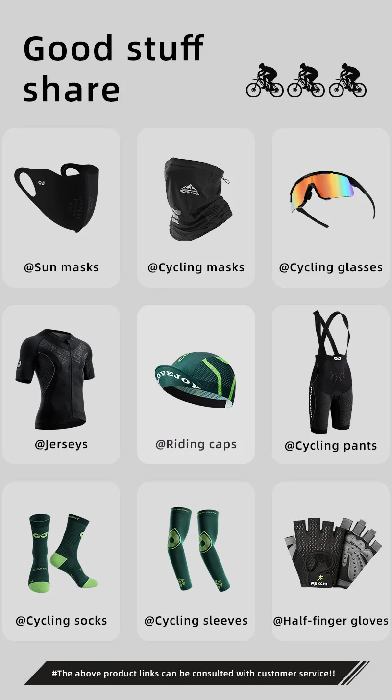 Cycling gloves, cycling bandana, cycling scarves, fishing hats, arm sleeves and many other outdoor clothes accessories.