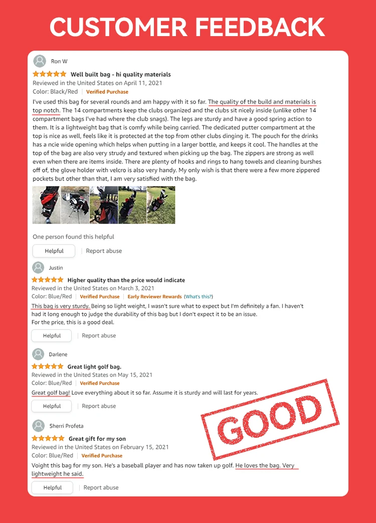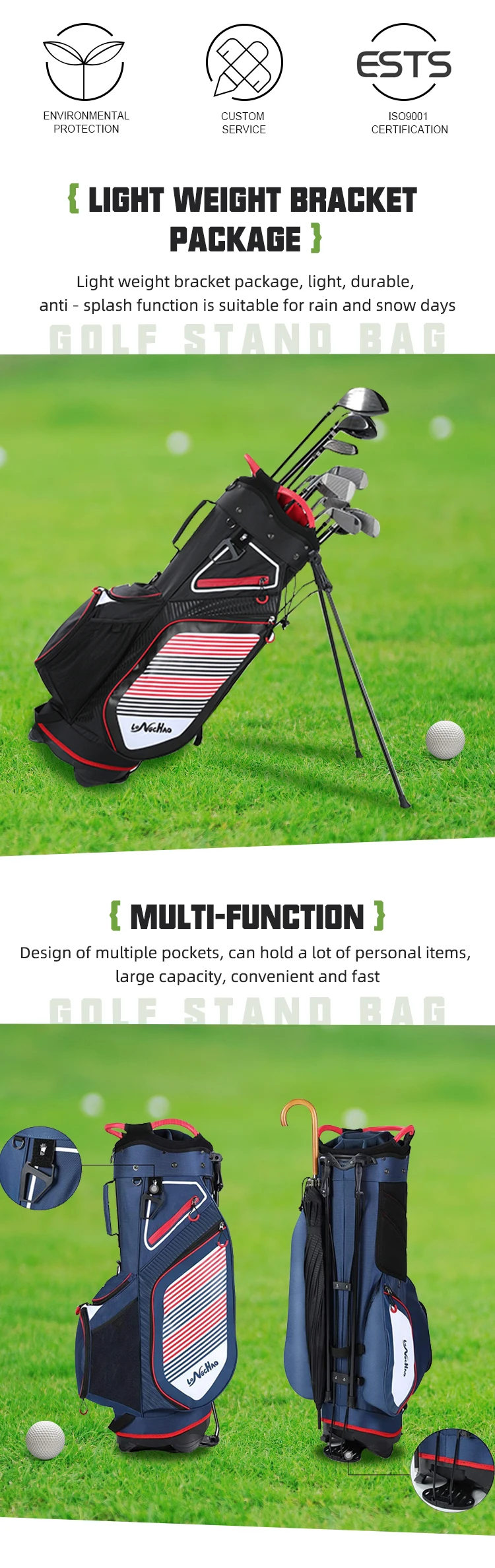 Granddragon Custom Logo Nylon 14Ways Golf Stand Bag Portable Lightweight OEM personalized custom golf bag with legs