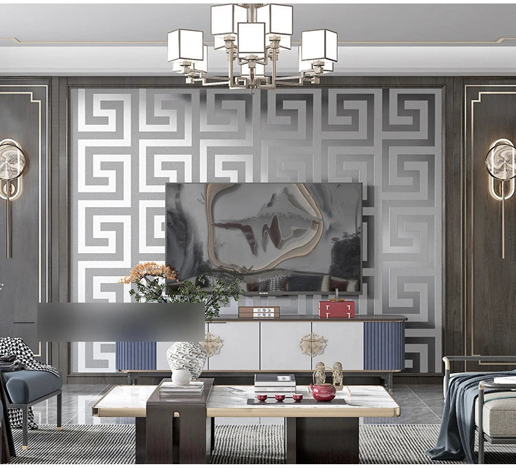 Giấy Dán Tường Hoa Văn Hy Lạp Chống Nước Hiện Đại