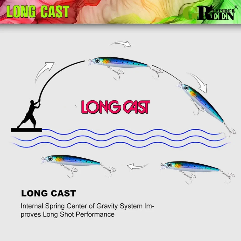 GREENSPIDER Sinking Minnow 100mm 34g Wobbler Pesca Swimbait Long Cast Tackle Pike Fishhook Sea Fishing Lure Jerkbait