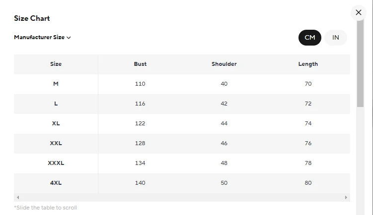size_info : {"sizeInfoList":[{"length":{"cm":"110","inch":"43.31"},"size":"M","vid":-1},{"length":{"cm":"11 6","inch":"45.67"},"size":"L","vid":-2},{"length":{"cm":"122","inch":"48.03"},"size":"XL","vid" :-3},{"length":{"cm":"128","inch":"50.39"},"size":"XXL","vid":-4},{"length":{"cm":"134","inch": "52.76"},"size":"XXXL","vid":-5},{"length":{"cm":"140","inch":"55.12"},"size":"4XL","vid":-6}]}