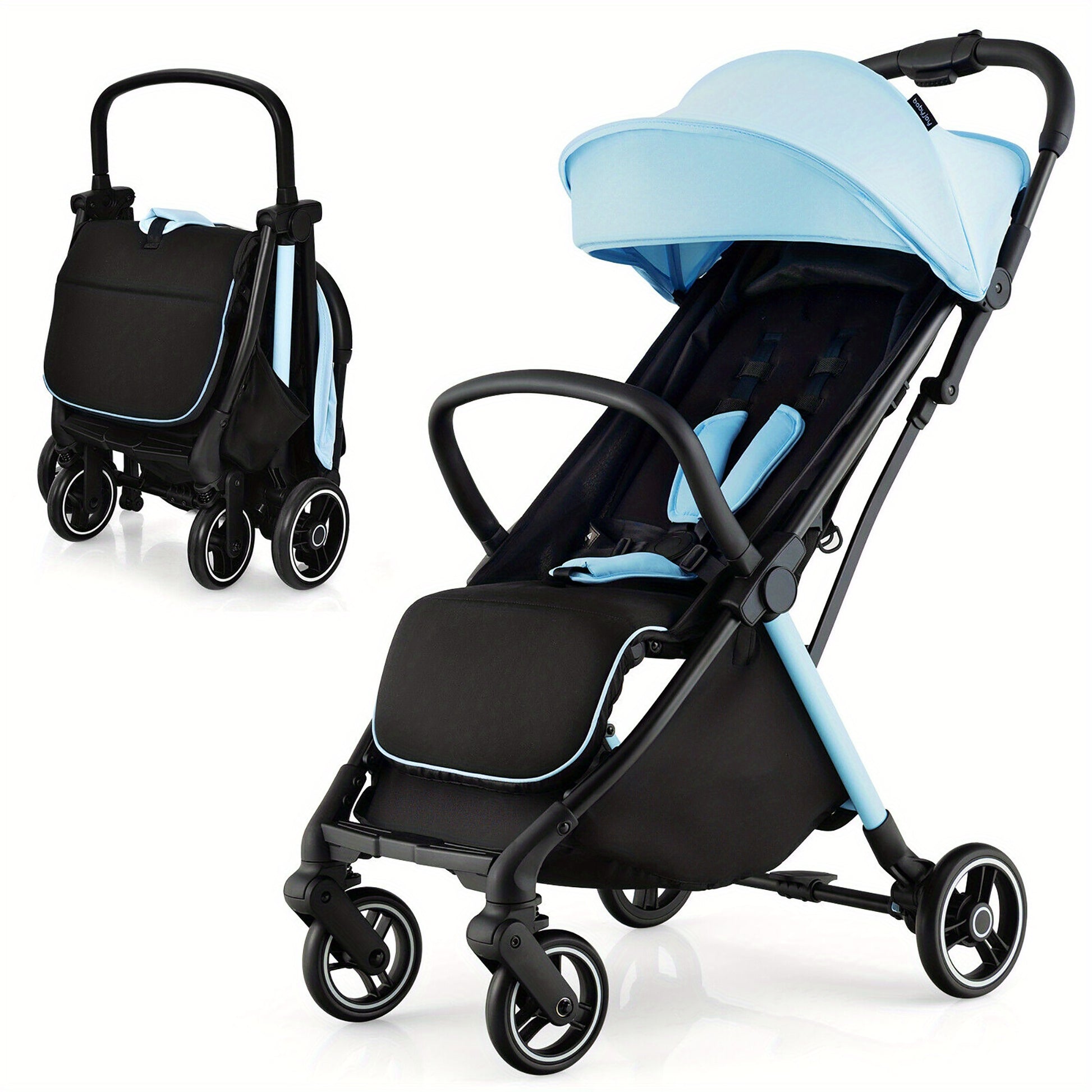 A top-notch option for your travels! Our handy baby stroller is perfect for infants aged 0 to 36 months, providing utmost convenience for parents. This user-friendly baby stroller boasts a lightweight aluminum frame weighing a mere 15 lbs, allowing for effortless transportation. Additionally, its compact size and one-hand folding mechanism enables easy opening and closing. Equipped with anti-shock front wheels and lockable rear wheels, this stroller ensures a safe and smooth outdoor ride. Moreover, the multi-position reclining backrest and adjustable canopy enhance comfort. The stroller is easy to assemble with clear instructions and all necessary hardware. Notable features include a 5-point safety harness and detachable handrail for added safety, a breathable skylight with a magnetic closure for enhanced interaction, a one-hand folding design for convenient storage and transport, and a one-step brake for secure fixation in place.