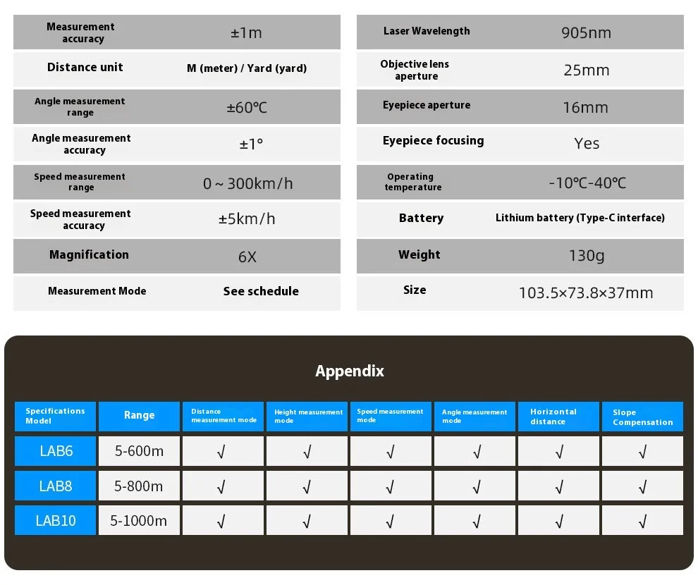 Measurement Range : 600M 800M 1000M 1200M 2000M