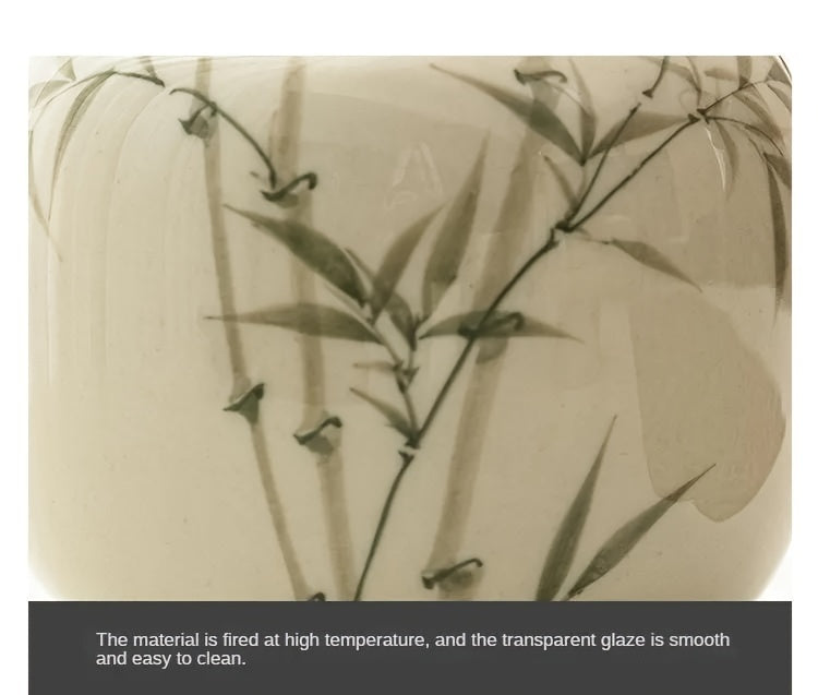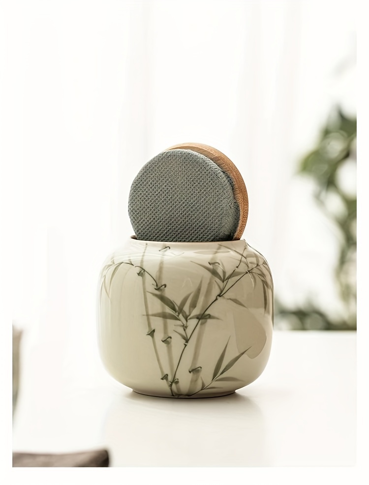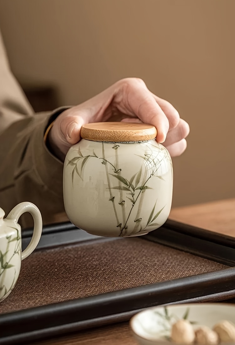 [High-Grade Pu'Er Green Tea Jar] Emerald Green Asparagus Fern Tea Jar Sealed Jar Ceramic Tea Container Moisture-Proof Chinese High-Grade Pu'Er Green Tea Warehouse