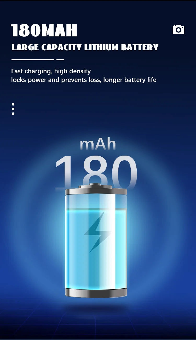 2. Built-in 180mAh battery can stand by for a long time, so you don't have to worry about going out when traveling outdoors.